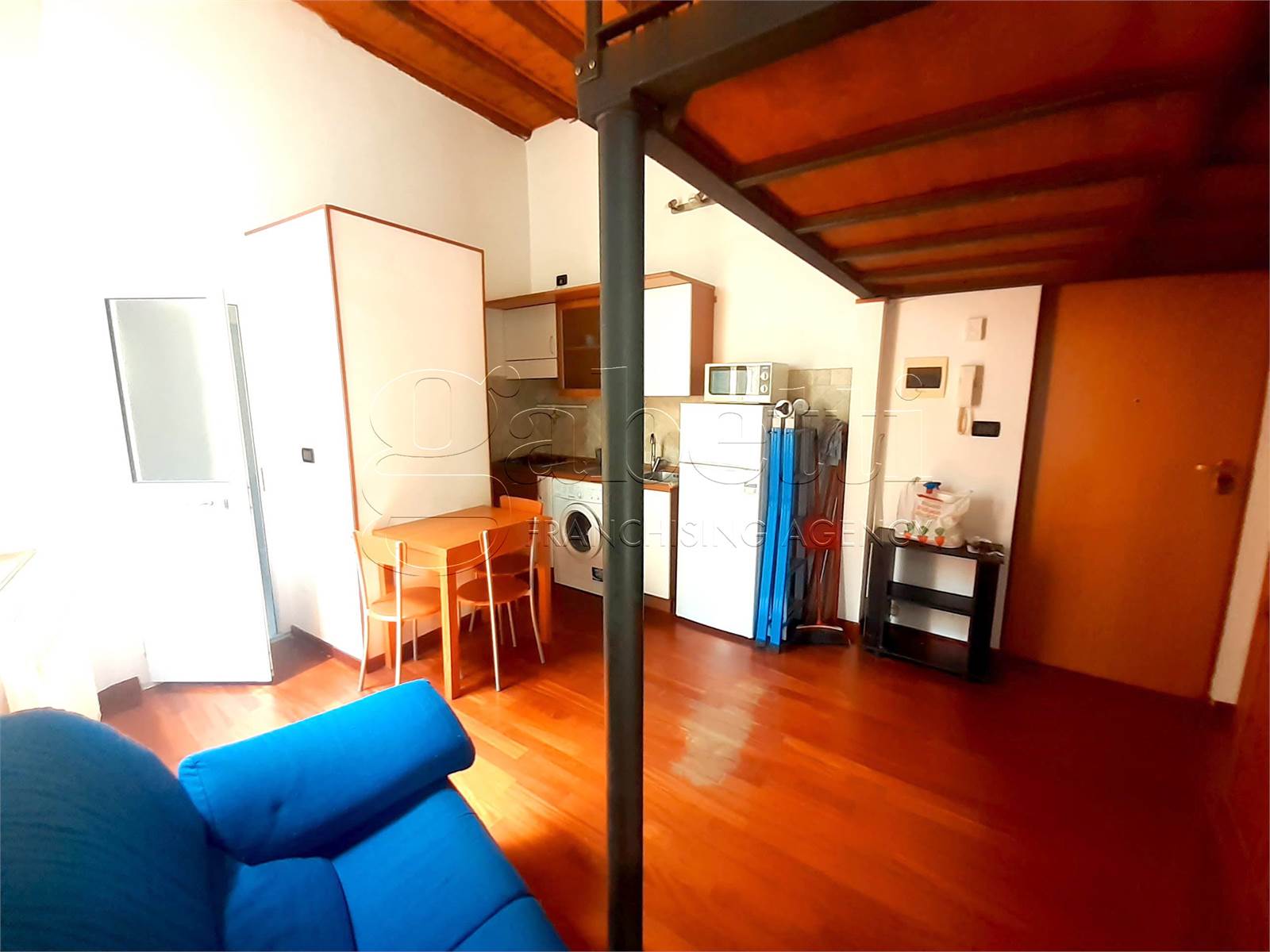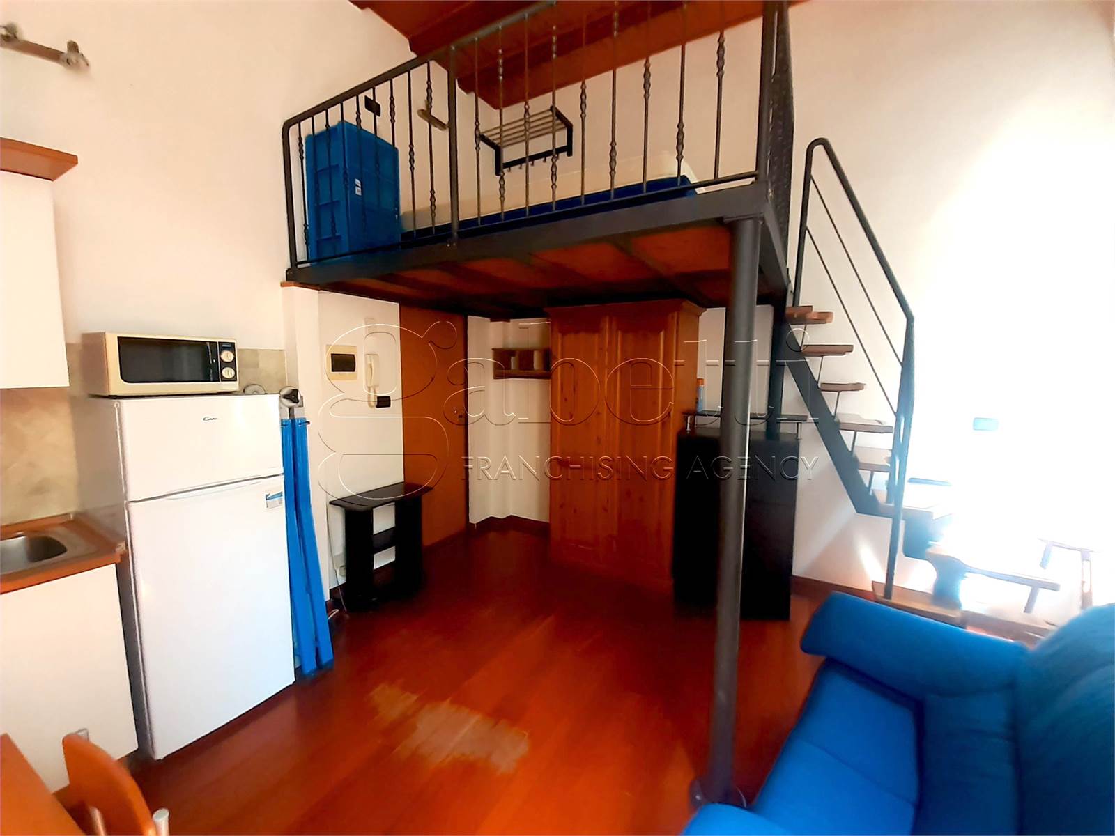 Via Boccaleone, luminoso monolocale arredato, sito al primo ed ultimo piano e composto come segue: soggiorno con angolo cottura, zona letto in soppalco, bagno finestrato, cantina/posto cicli.