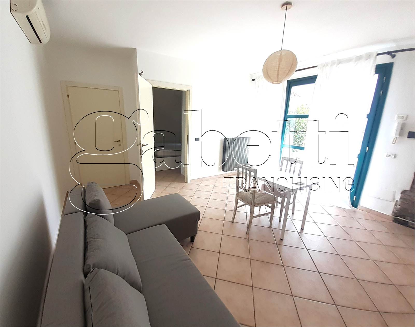 Via Arginone (tratto cittadino), in contesto di ex fienile ristrutturato, libero subito bilocale arredato, sito al piano terra e dotato di ingresso indipendente e giardino privato.