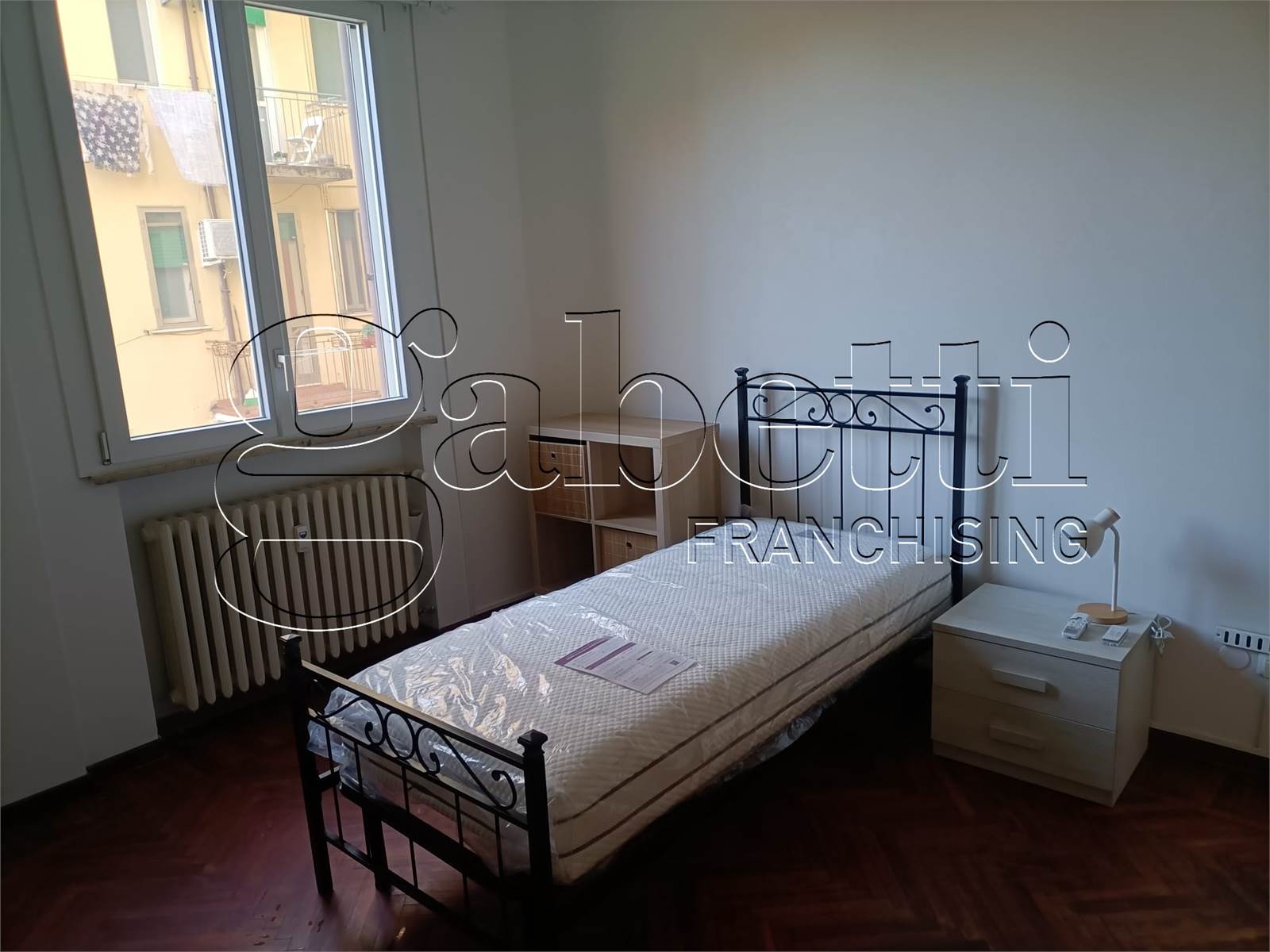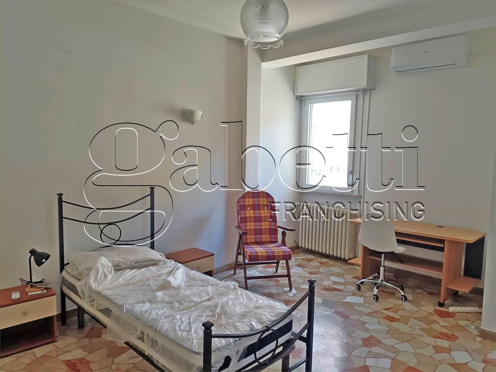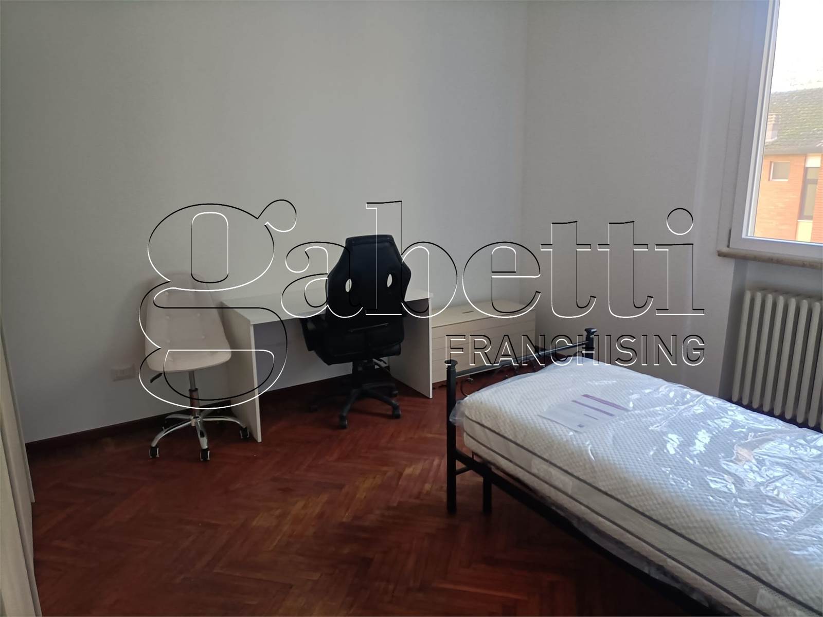 L’immobile è composto da cucina, vano comune, bagno e da 3 stanze singole, tutte climatizzate e completamente arredate con mobilio nuovo, pensate per garantire comfort e funzionalità durante lo studio. Completa la proprietà anche un garage per un automezzo o ricovero biciclette.