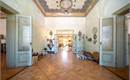 Al piano terra, l’ingresso principale conduce alla corte privata, otto ampi ambienti, attualmente adibiti a sale di rappresentanza e studi, oltre a due bagni. Una splendida scala curvilinea in marmo conduce al primo piano, dove sono presenti un grande salone, una cucina, sei camere e quattro bagni.