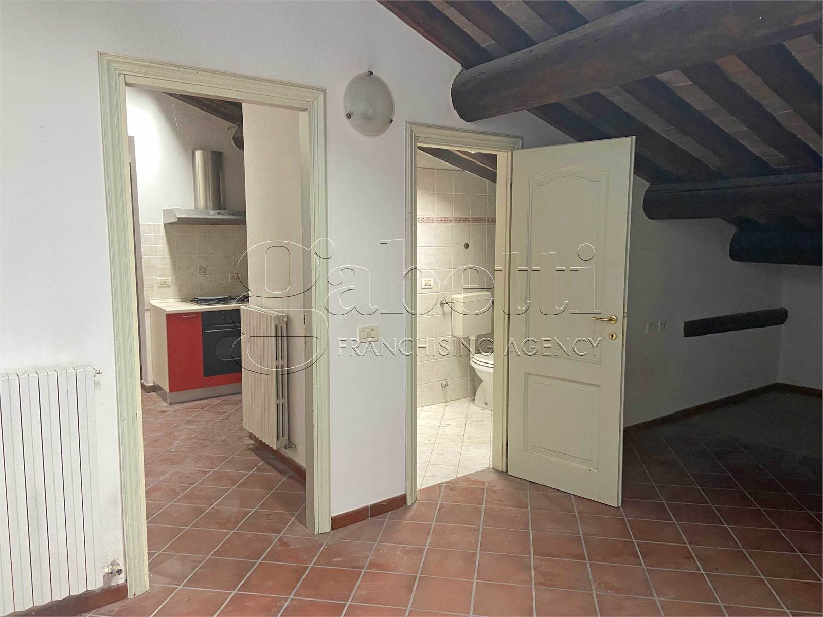 La mansarda si presenta in buono stato di manutenzione generale e richiede solo piccoli interventi di manutenzione ordinaria. L'ingresso si apre su una luminosa zona giorno con soppalco, ideale come area relax o studio. La zona pranzo è dotata di un pratico angolo cottura. La camera matrimoniale è spaziosa e confortevole, mentre il bagno è funzionale e ben tenuto.