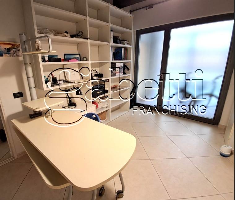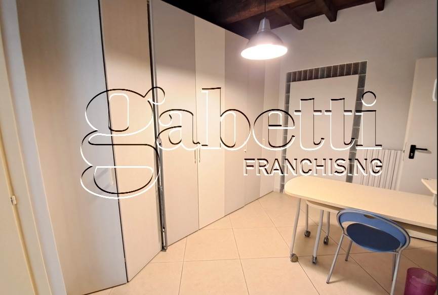 L'appartamento si compone di: ingresso con attigua zona privata per ricovero bici, soggiorno con accesso al giardino privato, cucina a vista, camera da letto matrimoniale, bagno, vano ad uso studio o garage, con piccolo servizio.