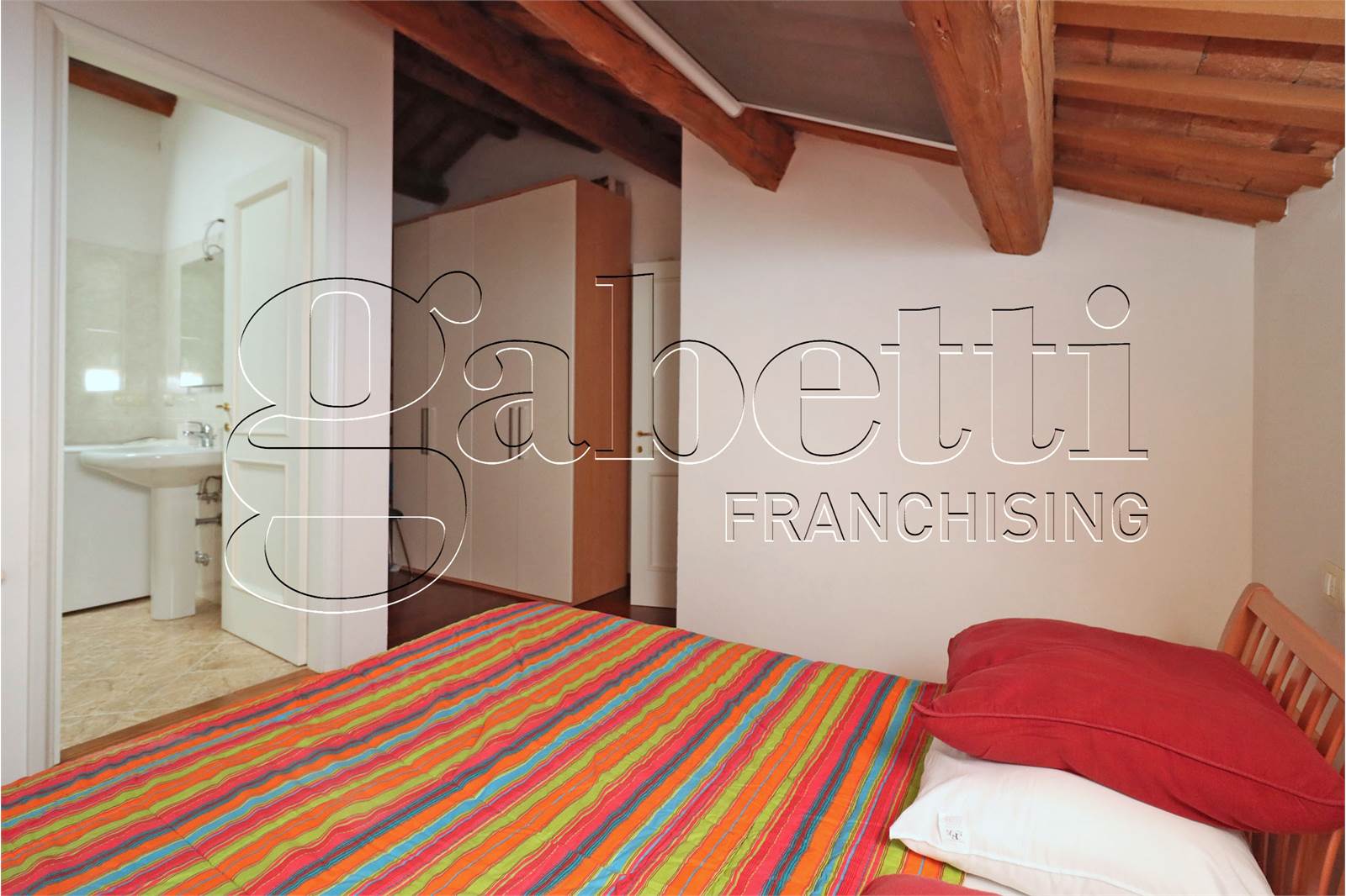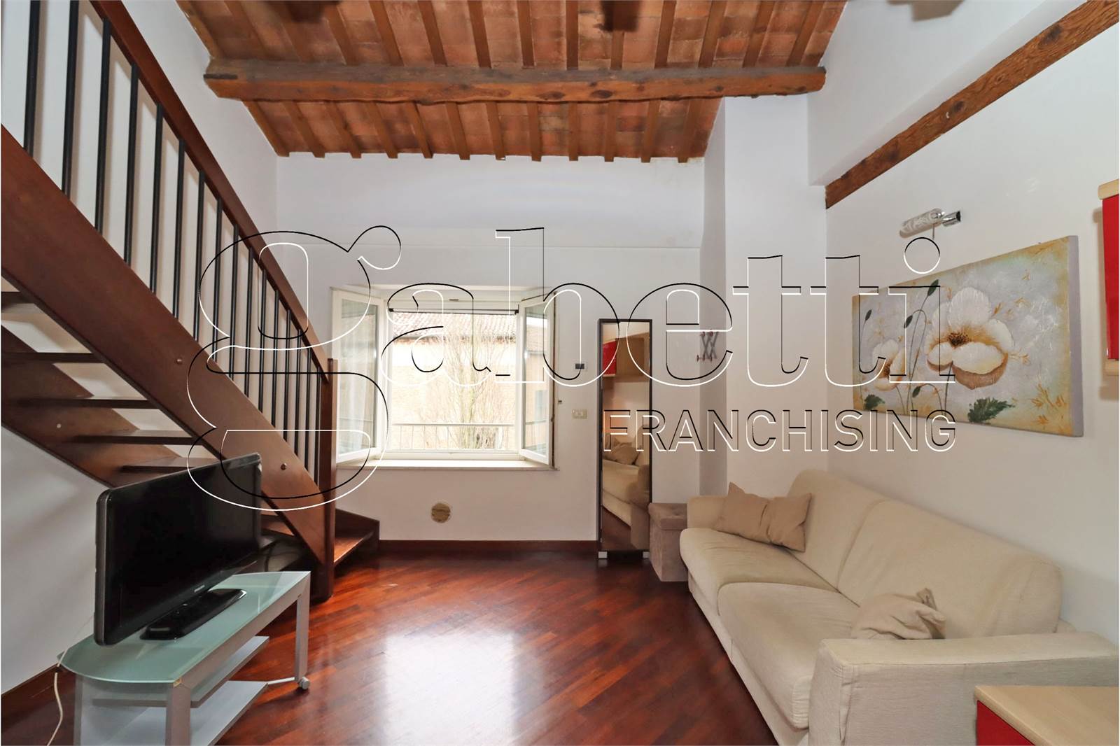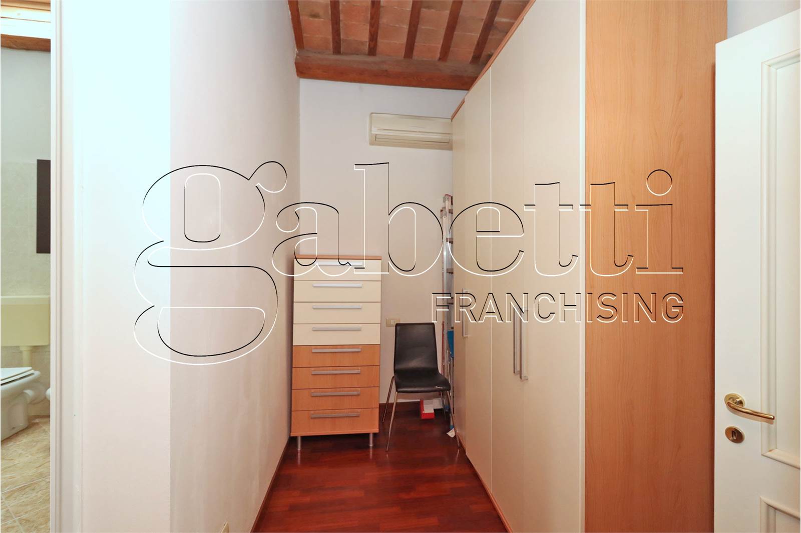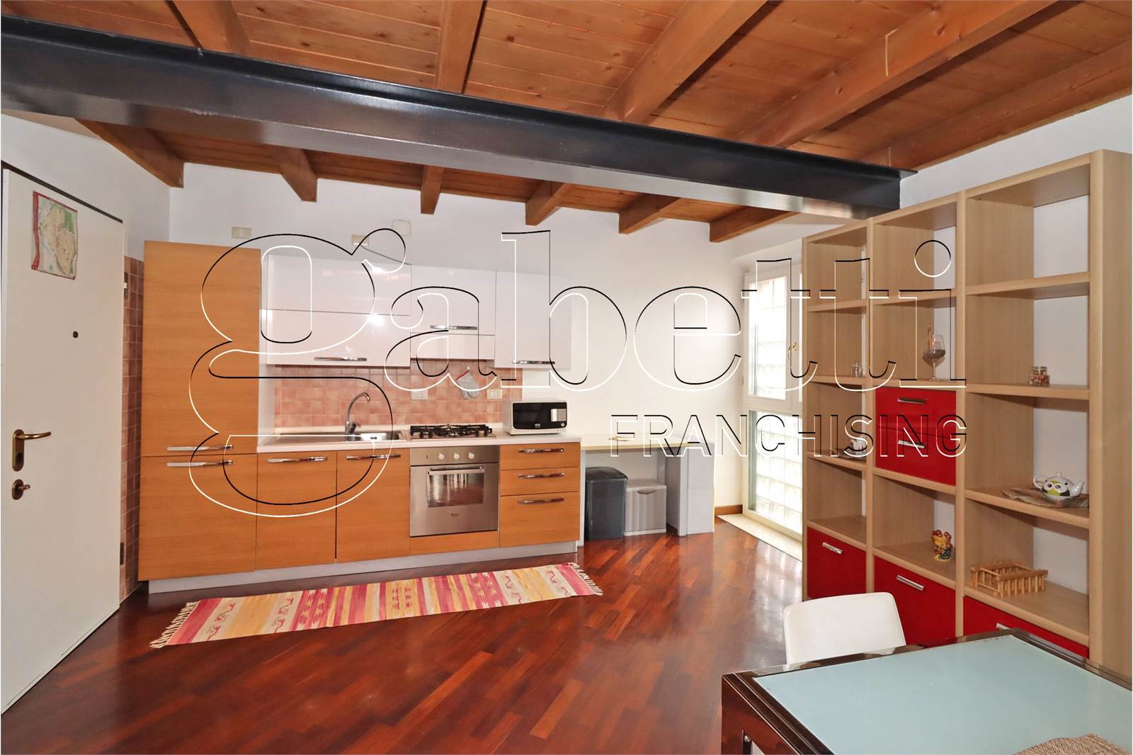 L'abitazione si dispone su due livelli ed è composta da un ampio e luminoso salone con angolo cottura al primo livello, scala a vista in legno per accesso al piano superiore con camera matrimoniale dotata di velux, cabina armadio e bagno finestrato.
