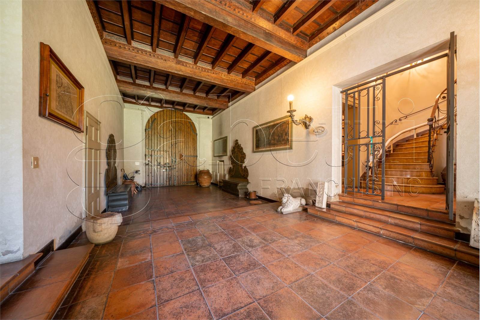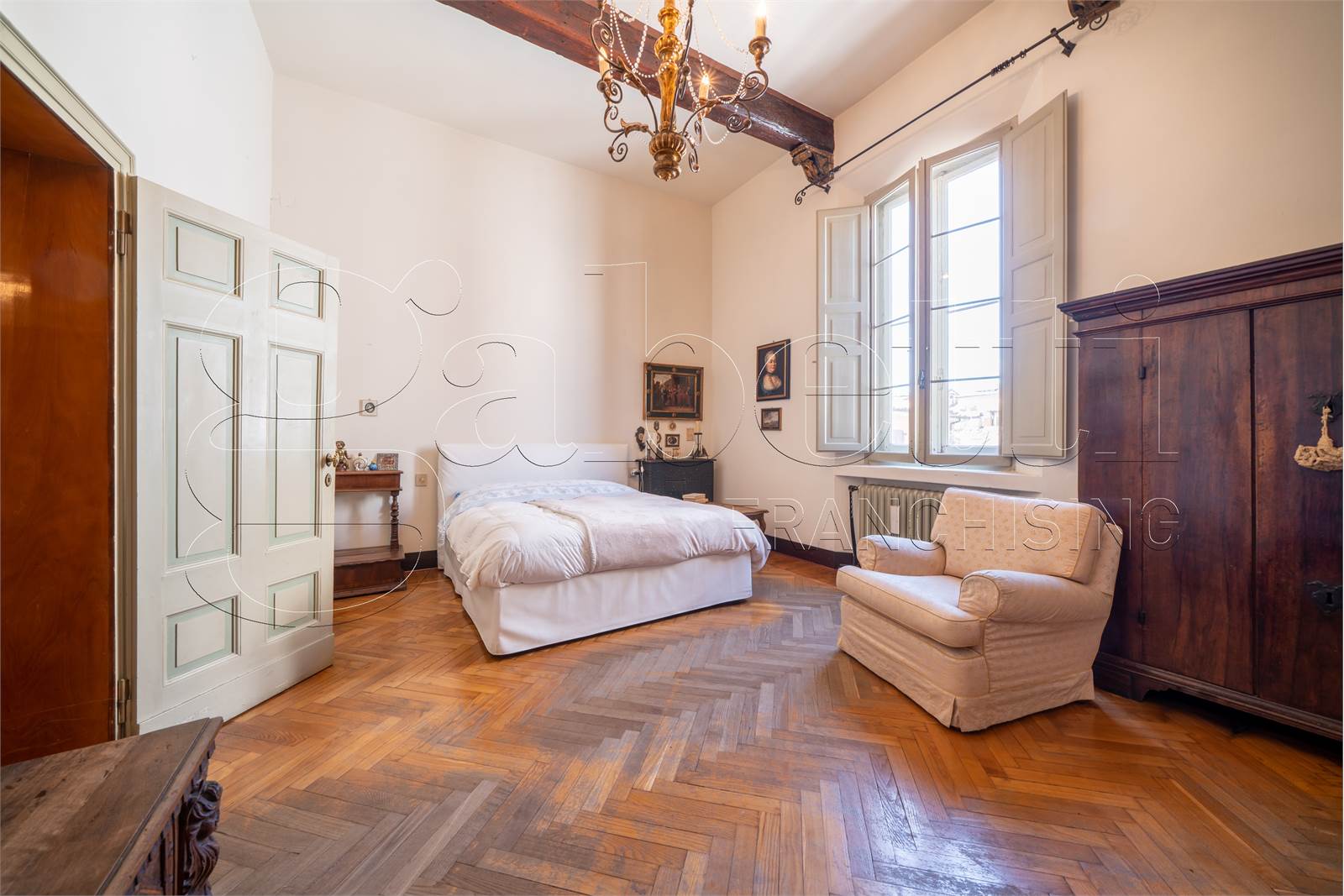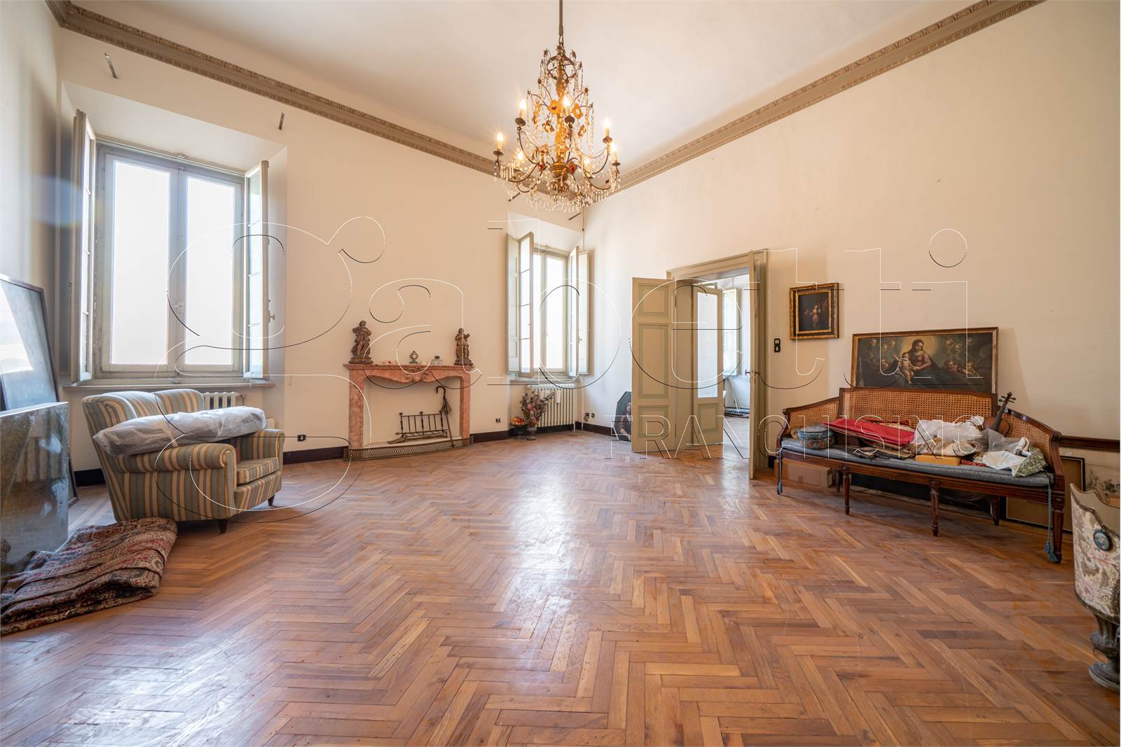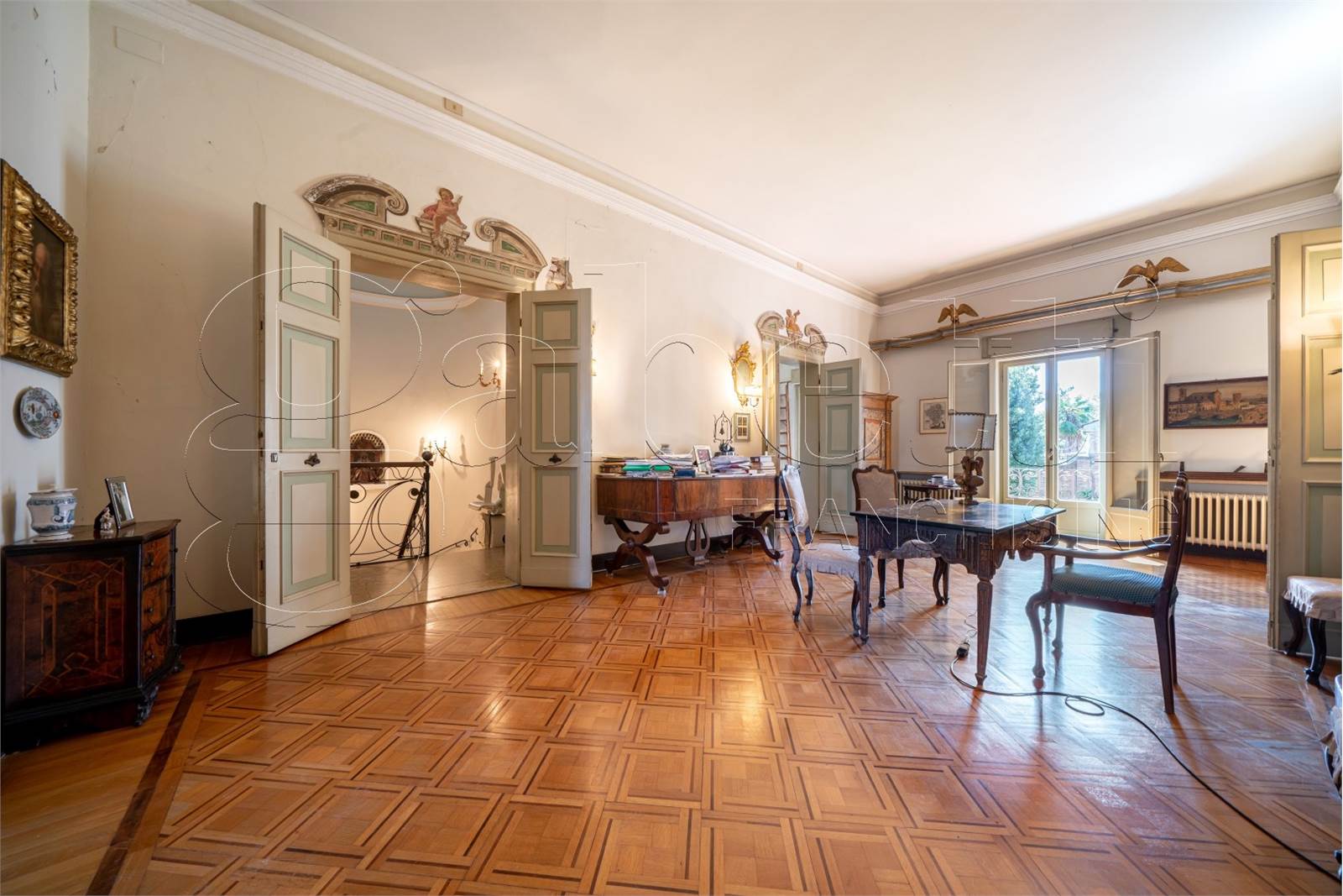 Al piano terra, l’ingresso principale conduce alla corte privata, otto ampi ambienti, attualmente adibiti a sale di rappresentanza e studi, oltre a due bagni. Una splendida scala curvilinea in marmo conduce al primo piano, dove sono presenti un grande salone, una cucina, sei camere e quattro bagni.
